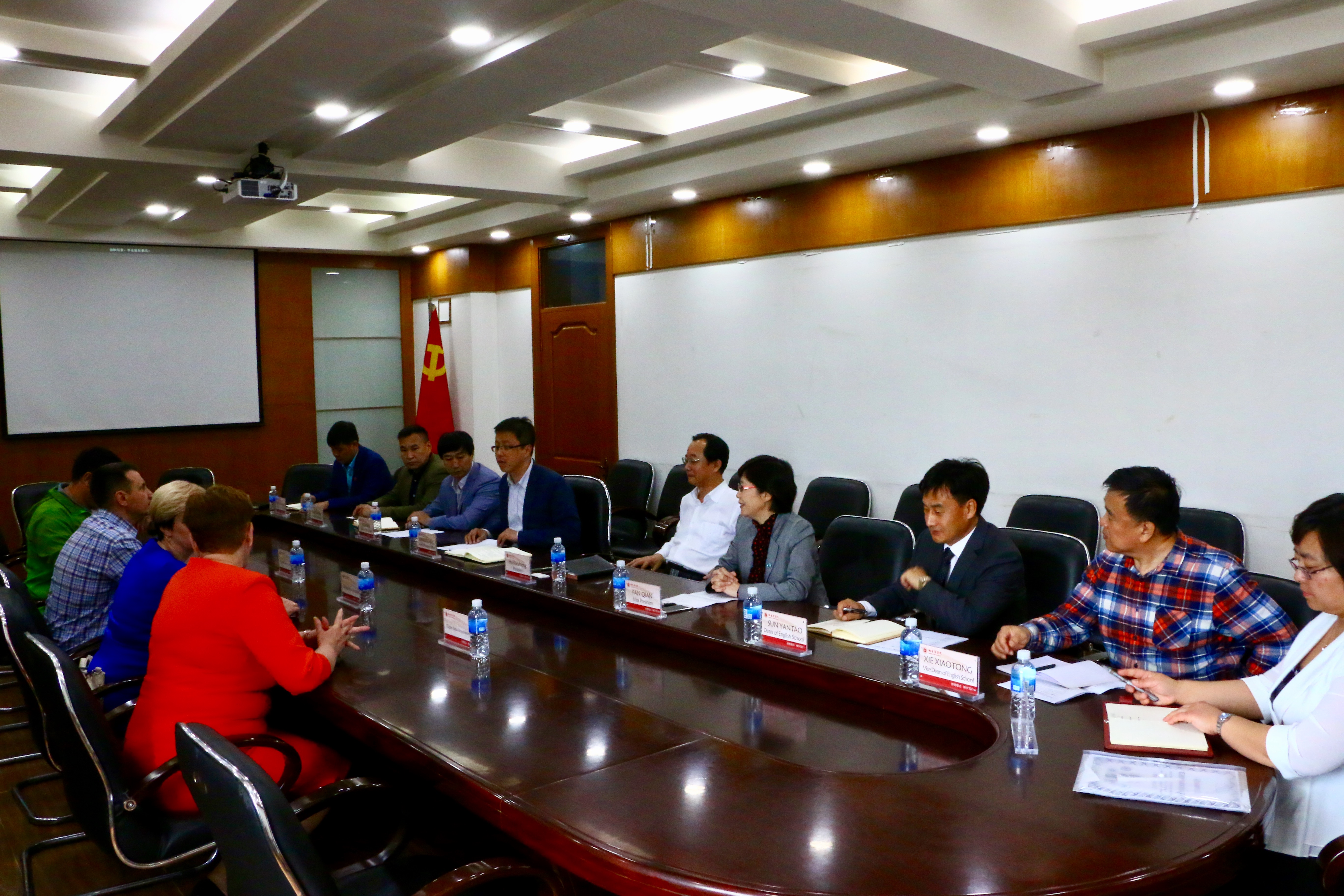 出席本次会谈的有外语学院副院长谢小童、体育学院副院长戴显岩、党政办公室副主任王晓峰、外语学院俄语系主任王黎明、外事办沈剑锋、翻译韩志平。
