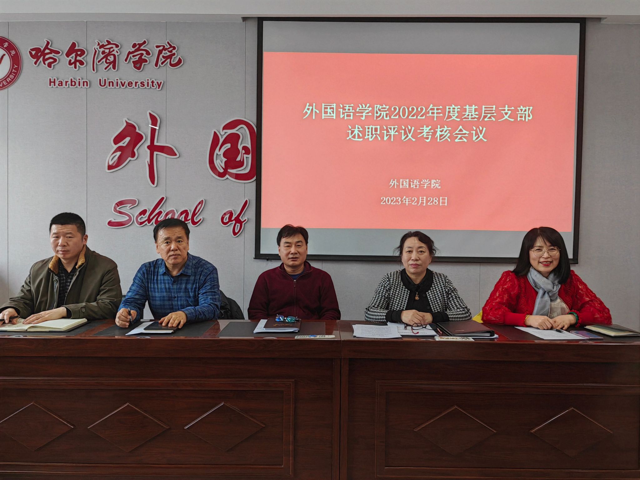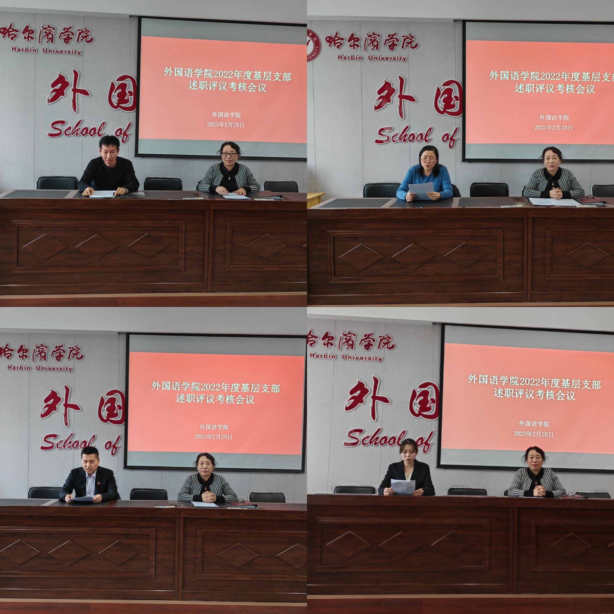 为深入学习宣传贯彻党的二十大精神,加强基层党组织建设,坚持和完善支部书记抓党建工作述职评议考核工作,外国语学院于2023年2月28日组织开展了2022年度支部书记党建述职评议考核大会,会议由外国语学院党总支书记冯丽杰主持,外国语学院全体教工党员参加会议。
