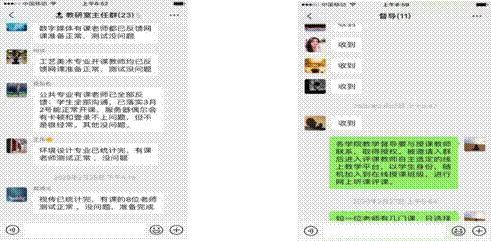 经济管理学院在对全体教师进行网络授课培训的基础上,组建网络教学义务服务小分队,通过视频会议等方式,与学院督导委员共同对学院教师的线上教学方式、方法进行指导与经验分享。赵彦龙、徐亿军两位老师开展线上公开教学,共有80余人次学生、100余人次教师参与。学院对因留降级、转专业、重修等特殊情况、暂时没有进入班级课堂的学生,由辅导员通知学生联系任课教师,任课教师横向联系班级干部找到学生的双向联系方式,确保学生如期进入班级听课。