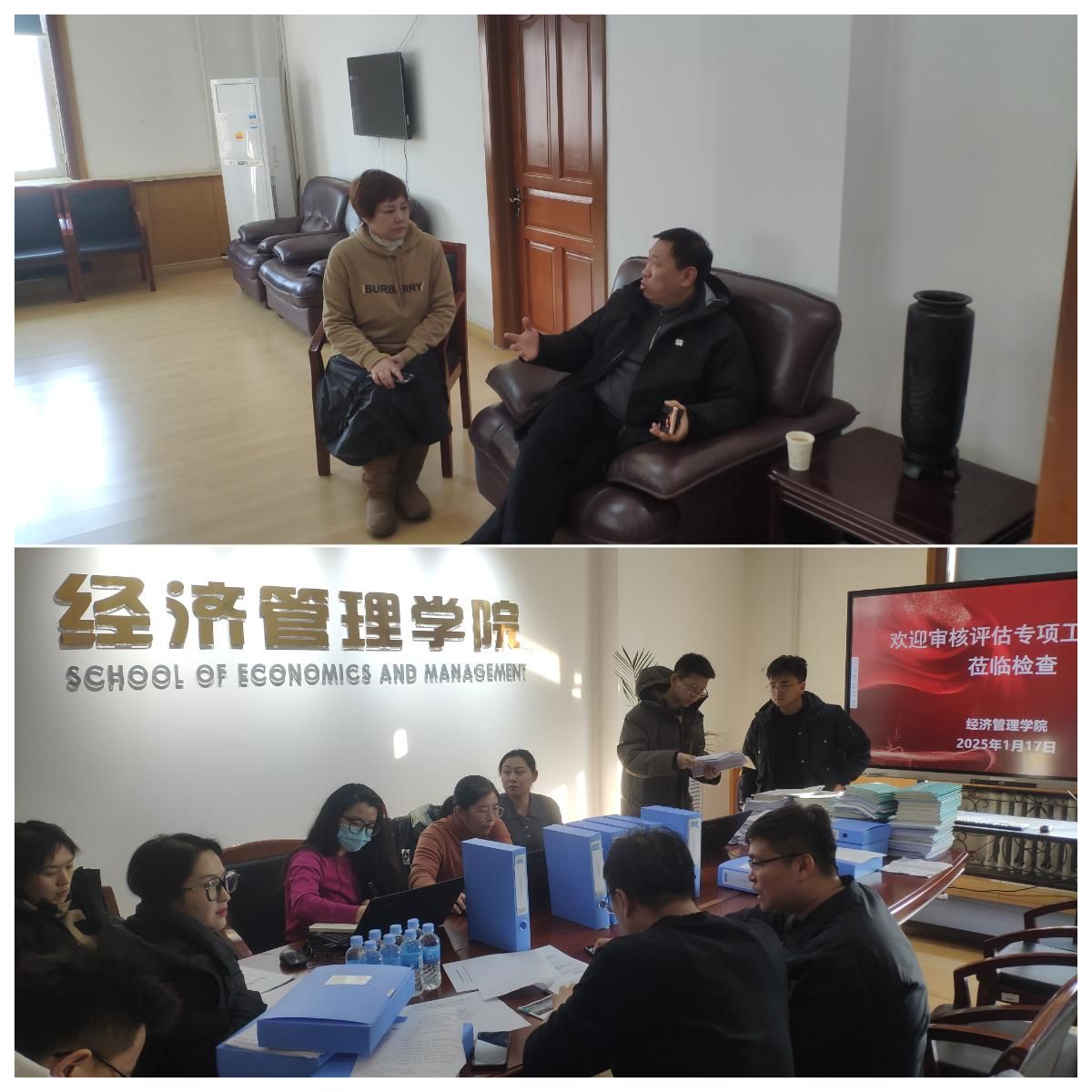 (文/赵浏洋)为切实贯彻落实学校本科教育教学审核评估工作要求,扎实推进经济管理学院审核评估各项工作落实落细落地,做好学院迎评促建工作,根据学校总体部署安排,1月17日下午,副校长于少鹏带队,学校本科教育教学审核评估工作检查组莅临经济管理学院,对学院开展审核评估实地检查。经济管理学院党委书记孙亮、正处级辅导员沙迪、副院长高子清和各系主任、学院审核评估工作小组成员参加迎检工作。