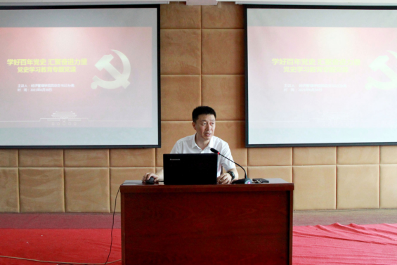 为庆祝中国共产党成立100周年,深入推进党史学习教育,6月30日,经济管理学院党总支书记孙亮以“学好百年党史 汇聚奋进力量”为主题,结合自身学习经历和感悟,用生动翔实的历史资料,为师生党员代表讲授了一堂精彩生动的党史学习教育专题党课。
