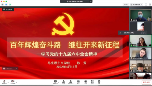 为巩固拓展党史学习教育成果,使广大师生党员深刻认识党百年奋斗的历史经验,充分汲取前行的智慧和力量,更加自觉地践行初心使命,4月13日下午,经济管理学院线上开展“党的十九届六中全会精神”专题讲座,本次讲座由哈尔滨市委宣传团成员、马克思主义学院院长兼书记孙芳主讲,经济管理学院党委书记孙亮主持讲座,吴旭峰校长以普通党员的身份参加了此次学习,经济管理学院党委理论学习中心组成员、师生党员参加学习。