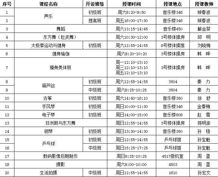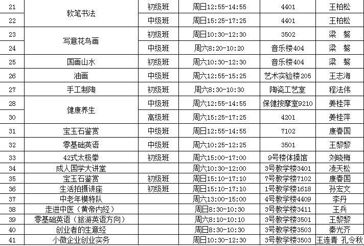 2018年春季学期成人班课程表
