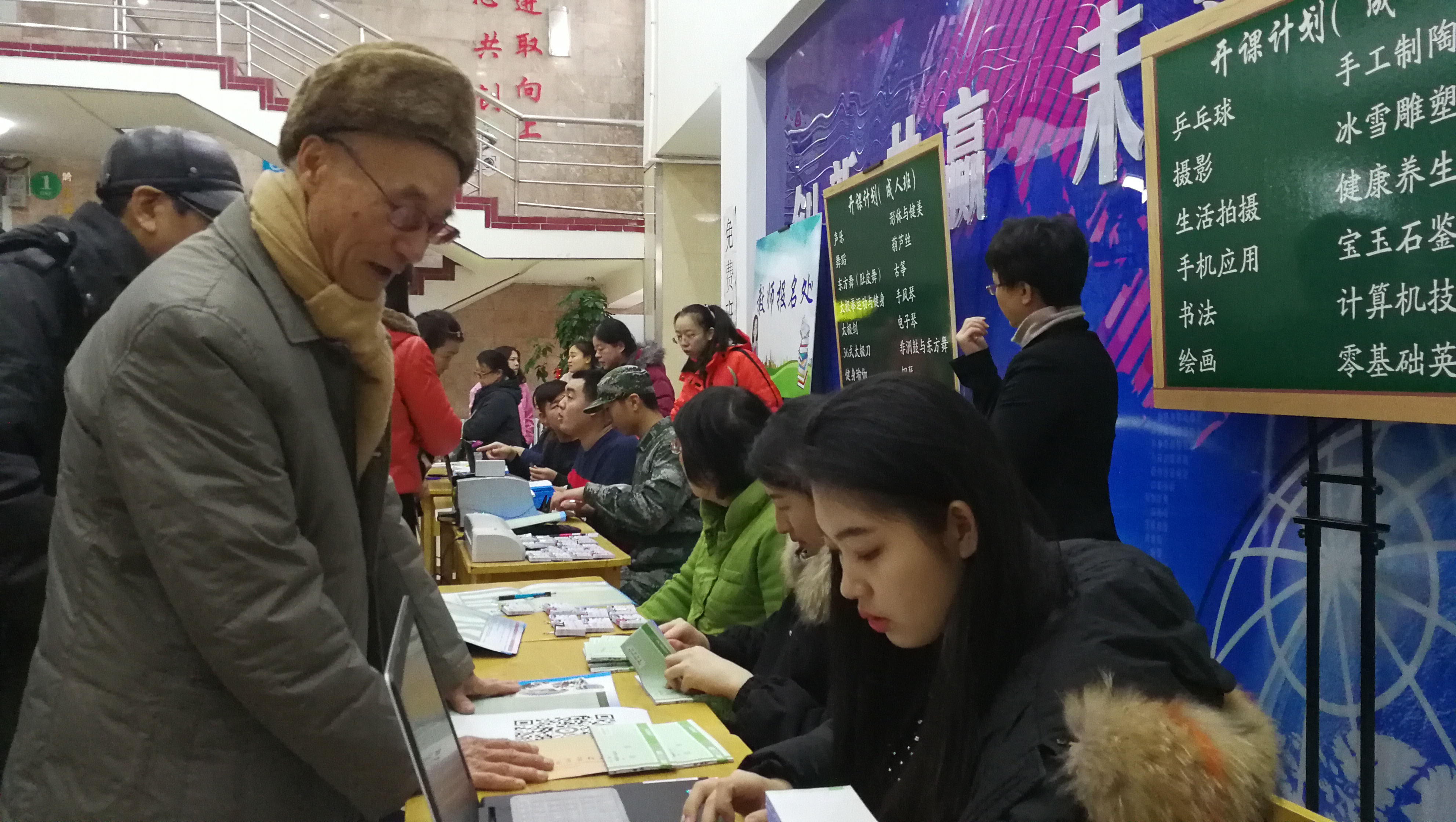 12月24日是首个报名日,我校继续教育中心(学院)的市民学习中心及培训中心在三号教学楼一楼大厅开展市民培训招生选课工作。报名现场人头攒动,还没有到工作时间,市民已经自觉地排起了长队,报名学员学习热情高涨,瞬间将部分课程的名额一抢而空。王利民副校长亲临报名现场给予指导并对招生组织、宣传工作给予高度肯定,并就继续教育中心(学院)的下一步工作提出指导建议。继续教育中心(学院)全体同志参加了本次活动,校大学生国旗护卫队的队员做为志愿者为此次活动担负维护秩序和接待报名任务。