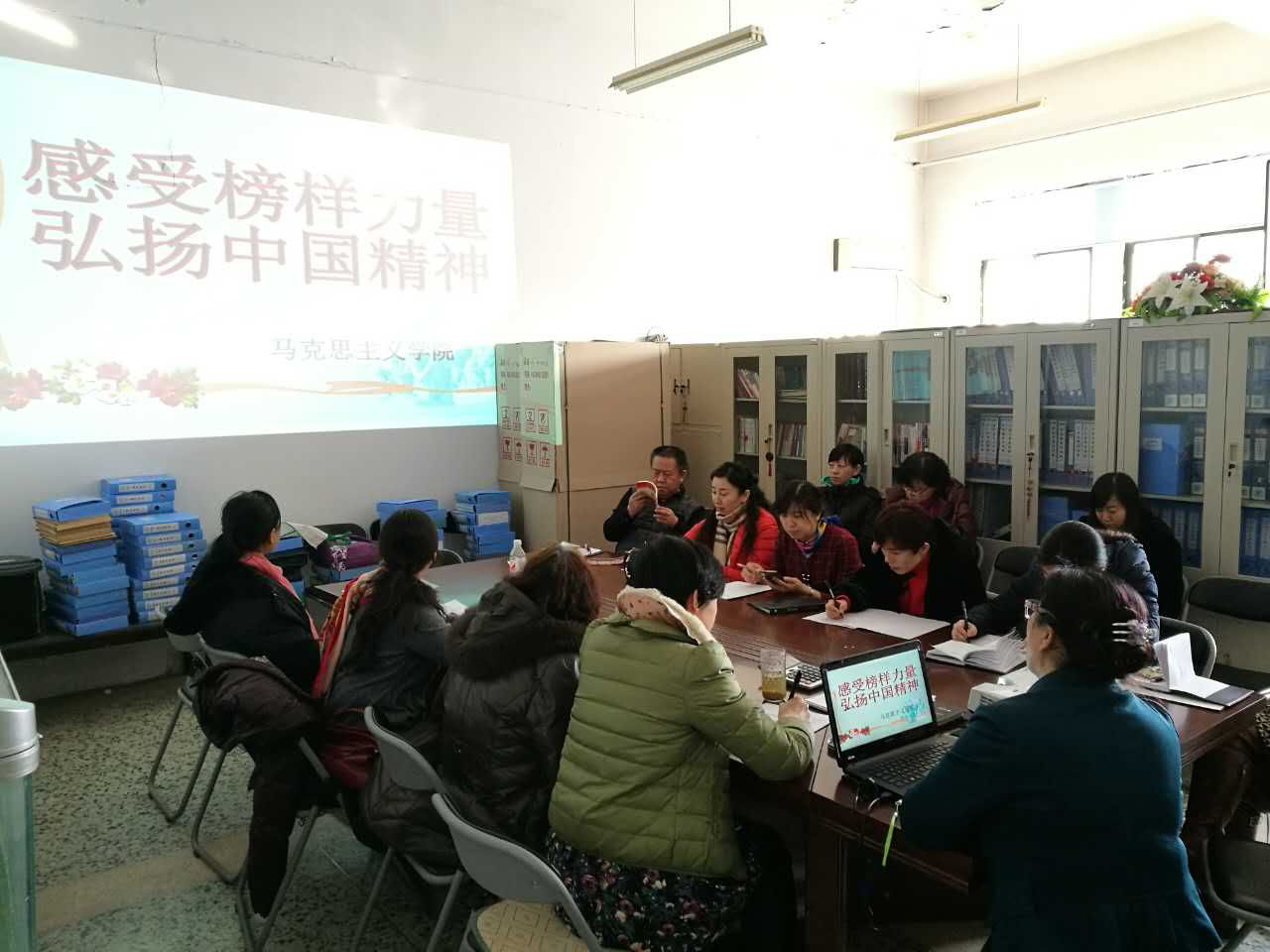2017年1月8日下午,马克思主义学院党总支组织全体党员教师召开“感受榜样力量 弘扬中国精神”座谈会。座谈会由党总支书记姜秀英主持。