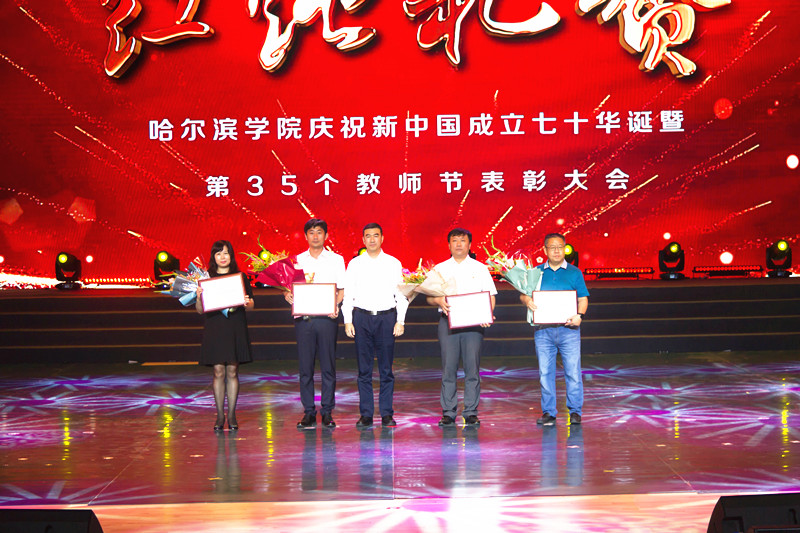 9月9日下午,我校师生欢聚一堂,在丁香剧场隆重召开庆祝新中国成立七十周年暨第35个教师节表彰大会。会议表彰了一年来默默耕耘在教学科研一线的先进典型。其中,我院国家社会科学基金项目获得者陈晓利老师获“MK体育第三届科研突出贡献奖”,由我院承办的黑龙江省廉政文化学术交流基地获“MK体育第二届科研贡献奖”。