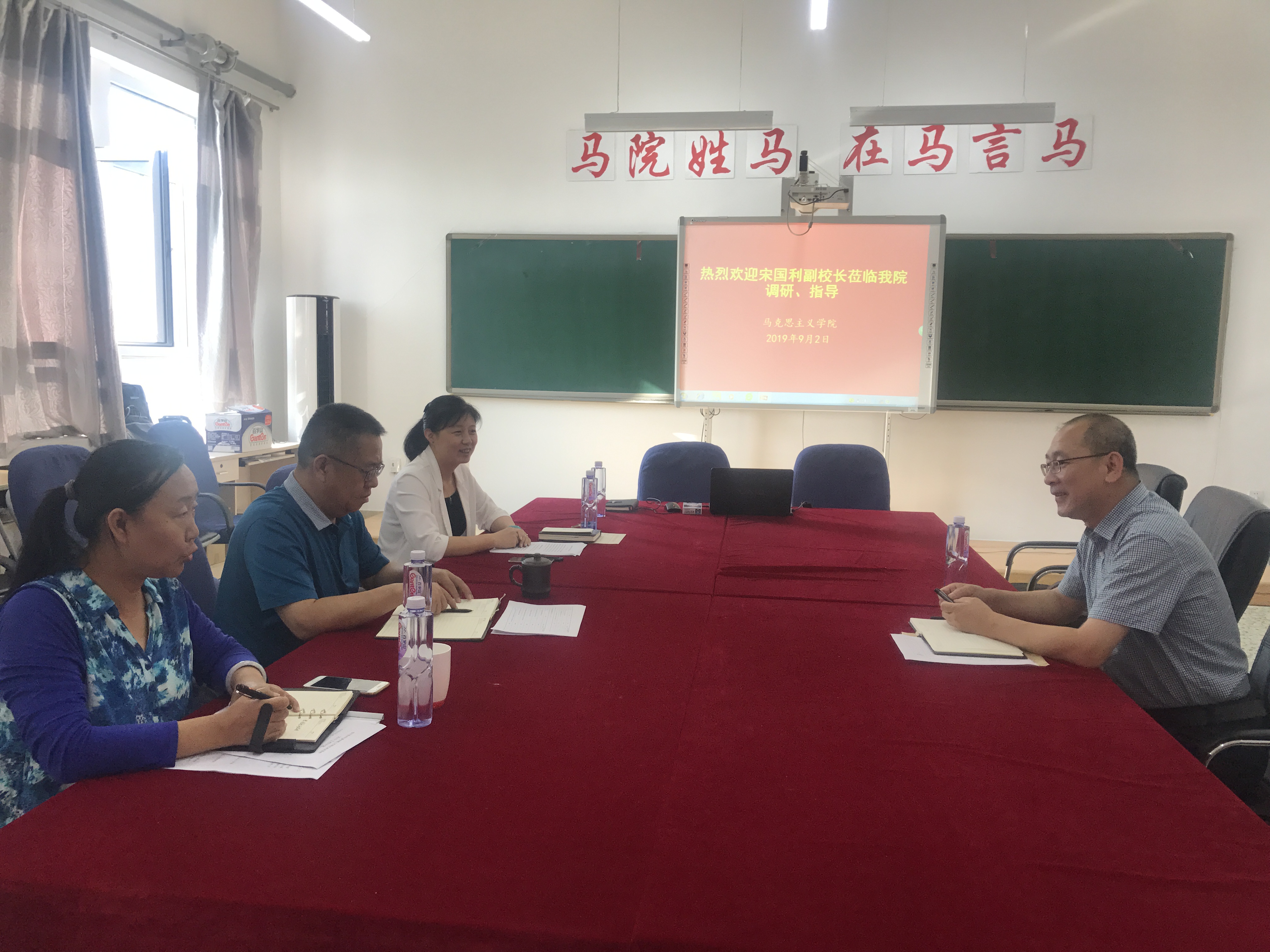 2019年9月2日下午,宋国利副校长莅临马克思主义学院进行工作调研和指导,进一步落实孙洪庆书记、胡宝忠校长在全校中层干部大会上讲话精神和有关学科建设和科研工作的要求。马克思主义学院院长吴卫东,副院长周惠杰、宋阔参加了此次调研。