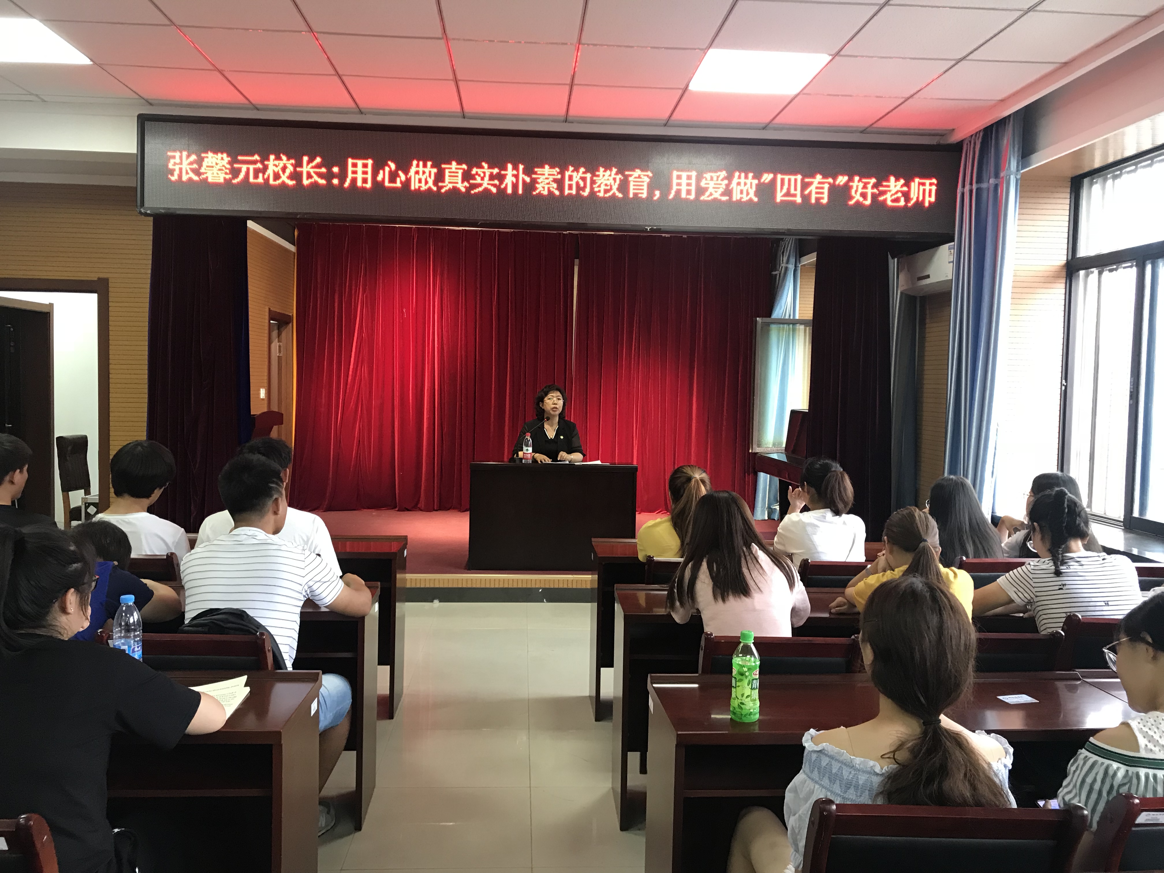 整场报告会历时近两个小时,张校长围绕“用心做真实朴素的教育,用爱做‘四有’好老师”主题展开,用她27年教育工作的感悟与师生分享了“什么是教育”、“如何成为一名优秀的中学教师”等内容,给师生以有益指导与深刻启迪。张校长指出,教育是影响社会上每一个家庭的重要因素,教育培养人良好的习惯。因此,教育在最本质意义上是一种发展,一种民生。张校长以她所在的哈尔滨市第124中学校真实的教师典范为例,向在座的师生诠释了一名优秀的人民教师应具备的四种境界,即被学生瞧得起的老师、能够让自己心安的老师、让学校为你骄傲的老师、让历史铭记的老师。张校长的报告语言朴实、情感真切,让在座的每一位学生了解到,自己作为一名教育工作者未来肩负的责任和使命。
