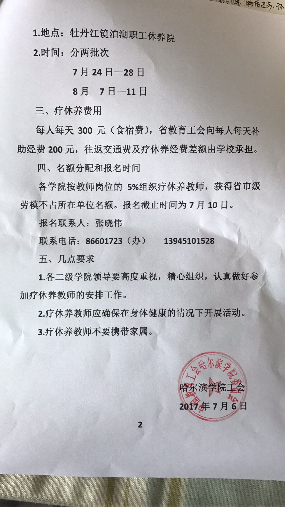 马克思主义学院基层工会响应校工会关于组织2017暑期教职工疗休养活动的要求和部署,拟派出陈春红、李雪娟等两名教师参加此次活动。