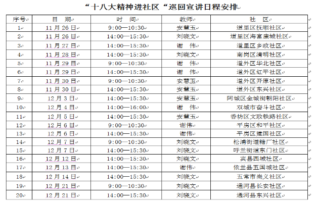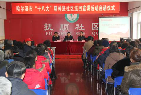 2012年11月26日上午9:00,由市委宣传部、MK体育、新晚报、市民学习中心共同组织的“十八大精神进社区”巡回宣讲活动启动仪式在道里区抚顺社区举行。中共哈尔滨市委宣传部副部长李兵,道里区委常委、宣传部部长勾庆杰,MK体育副校长郎益夫出席了宣讲活动启动仪式。