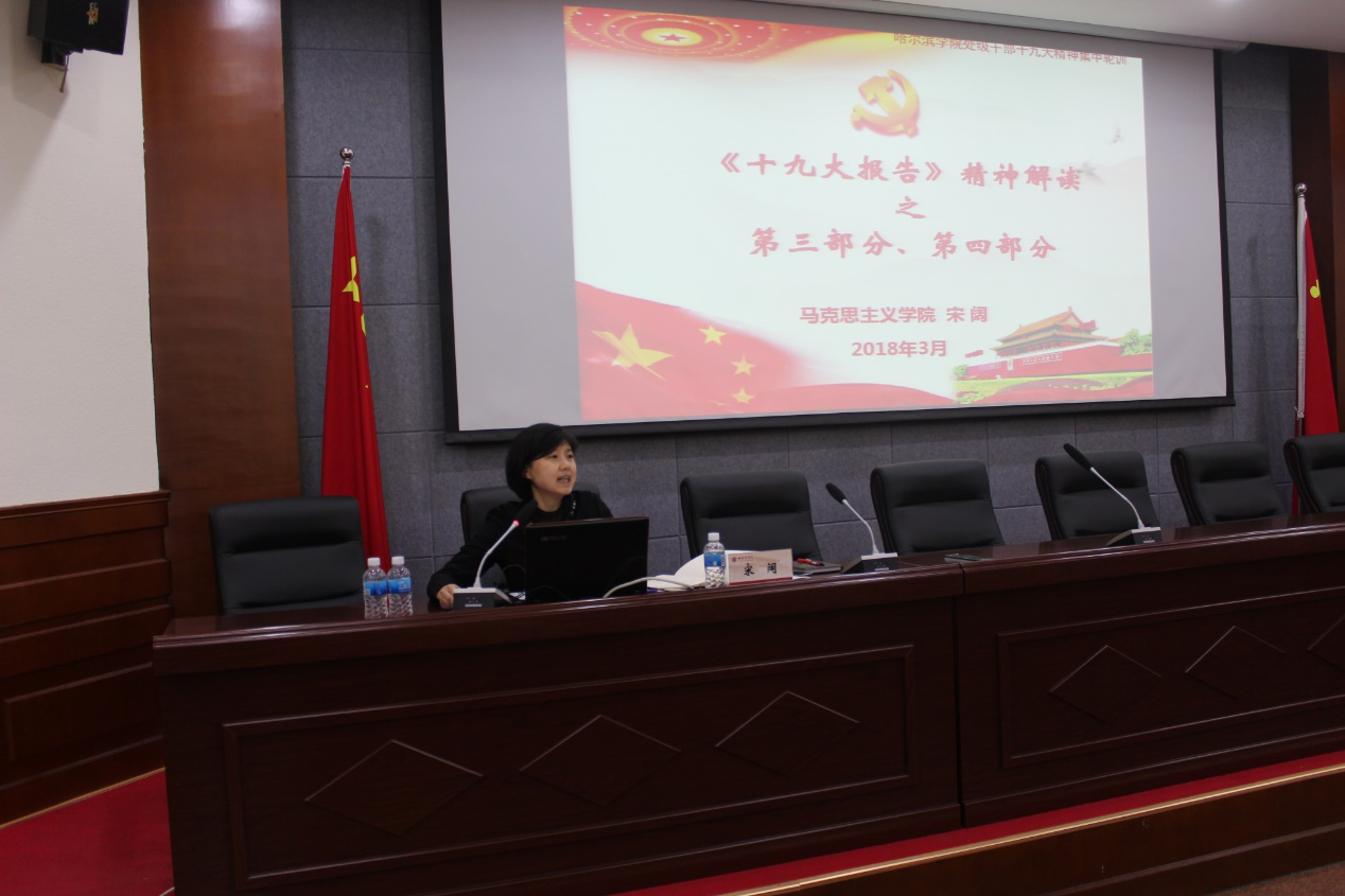 我院应MK体育党委组织部之邀,于2018年3月至5月期间,派多位教师为MK体育处级干部轮训班做十九大报告精神专题讲座。我院教师宋阔、姜秀英、周惠杰、安慧玉紧紧围绕“六个聚焦”总体要求和“十个深刻领会”学习重点,精心设计教学内容,从《新思想新征程》、《新时代新使命》、《中国特色社会主义五位一体总体布局》、《国防军队建设、一国两制与外交工作》四个专题对十九大报告做深刻解读,力求其精神全覆盖。整个专题讲座体系完整,重点突出。教师们认真备课,资料翔实,讲解透彻,效果良好。