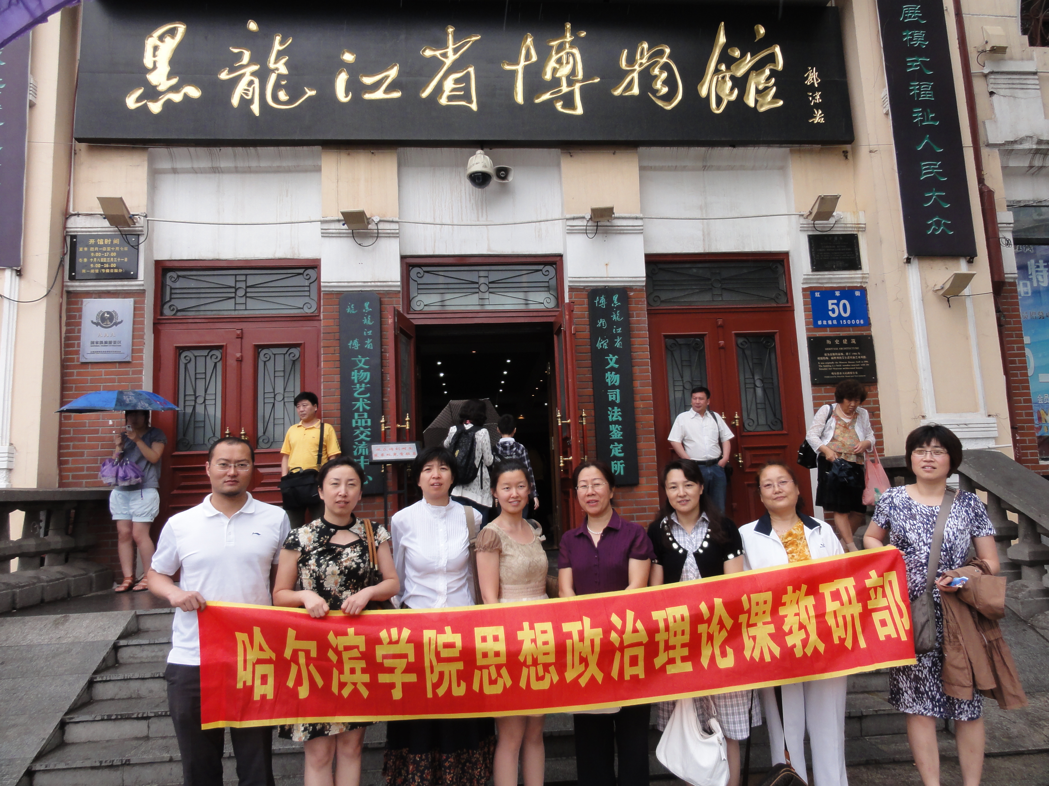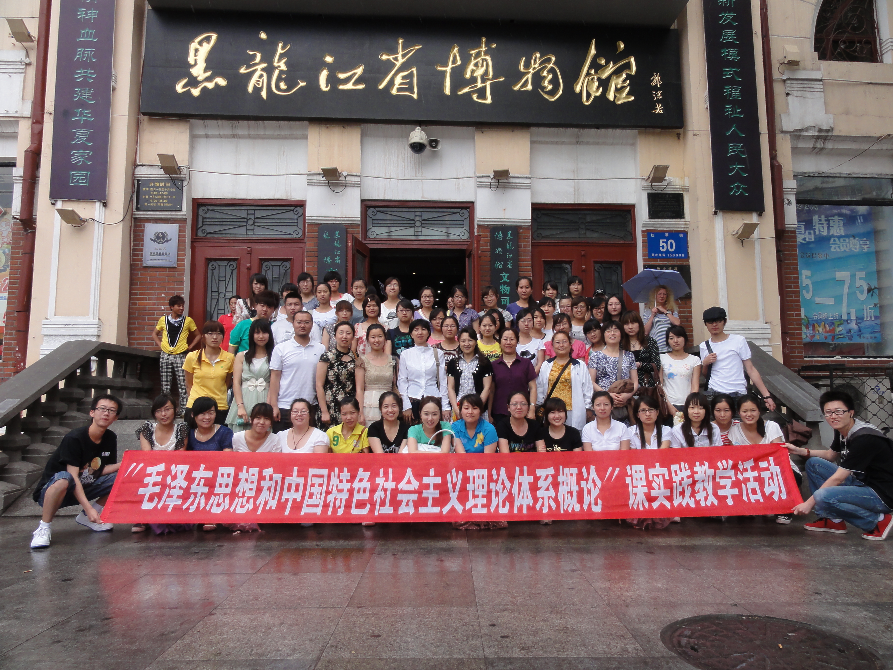 为提高教学科学性和实践性,思想政治理论课教研部毛泽东思想和中国特色社会主义理论体系概论课全体教师及部分学生于2011年6月22日下午前往黑龙江省博物馆参观考察。此次实践活动是为了践行科学发展观的精神,将理论和实践相结合,让学生在实践中了解中国特色社会主义的文化。