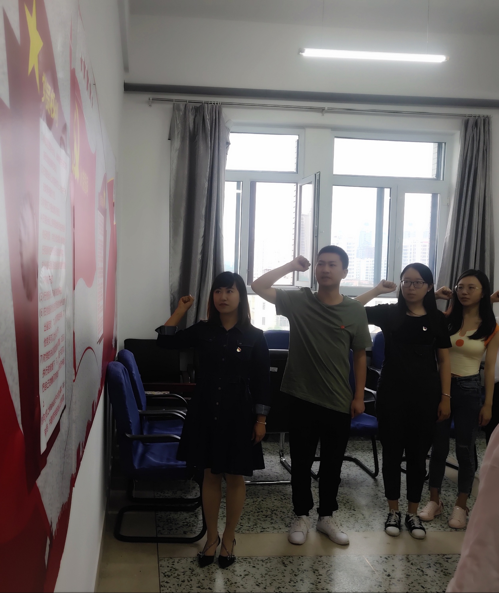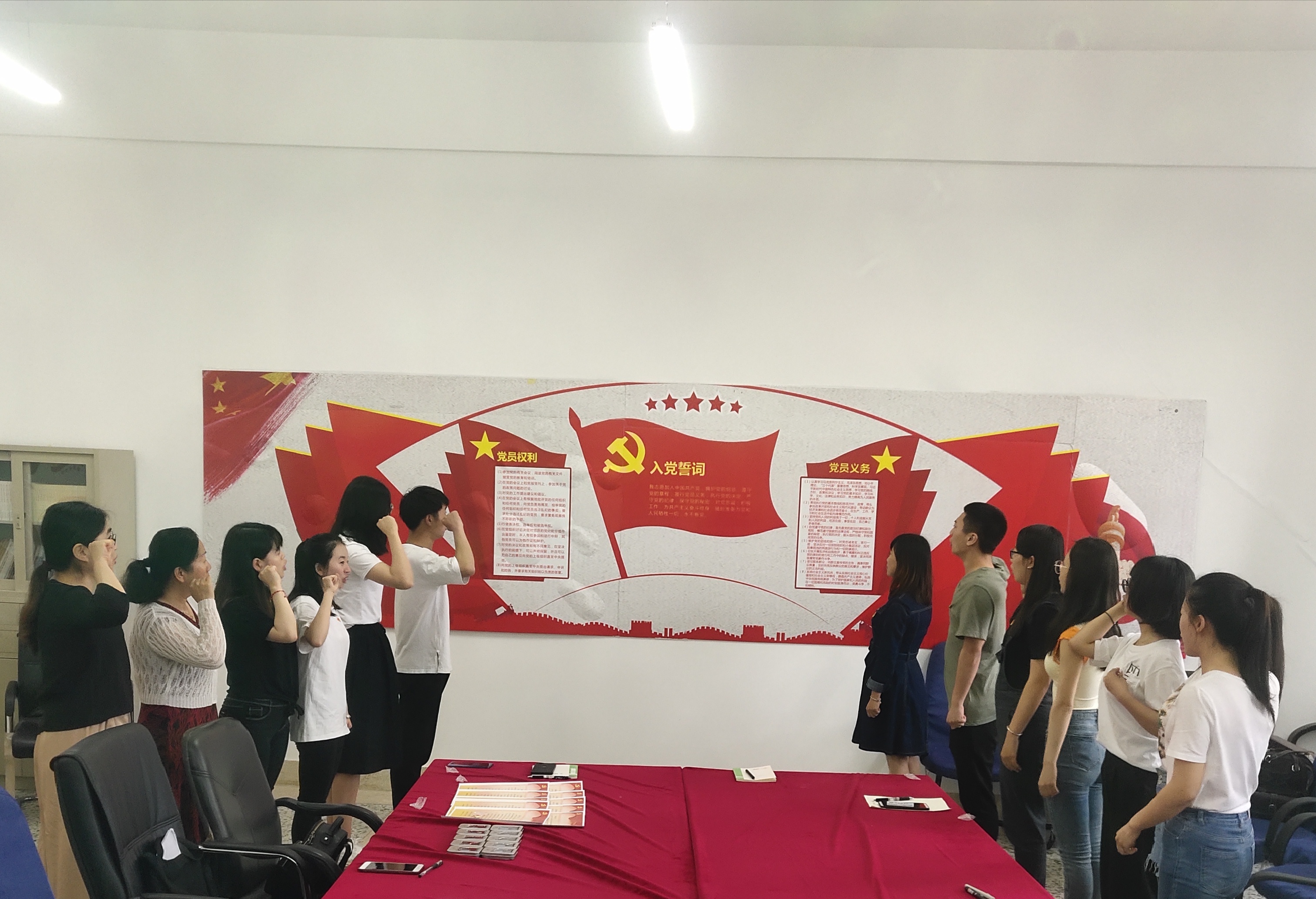 重温入党誓词,即重温入党时的决心和信念。始终铭记入党的誓言,是对自己的一种鞭策和激励。在第一党支部组宣委员张聪老师的领誓下,全体党员同志面向党旗,举起右手庄严宣誓。在宣誓过程中,全体党员同志字字铿锵有力,句句激昂慷慨:“我志愿加入中国共产党,拥护党的纲领,遵守党的章程,履行党员义务,执行党的决定…”重温入党誓词的意义在于恪守承诺,目的在于激励党员同志不断进取、奋斗终身。