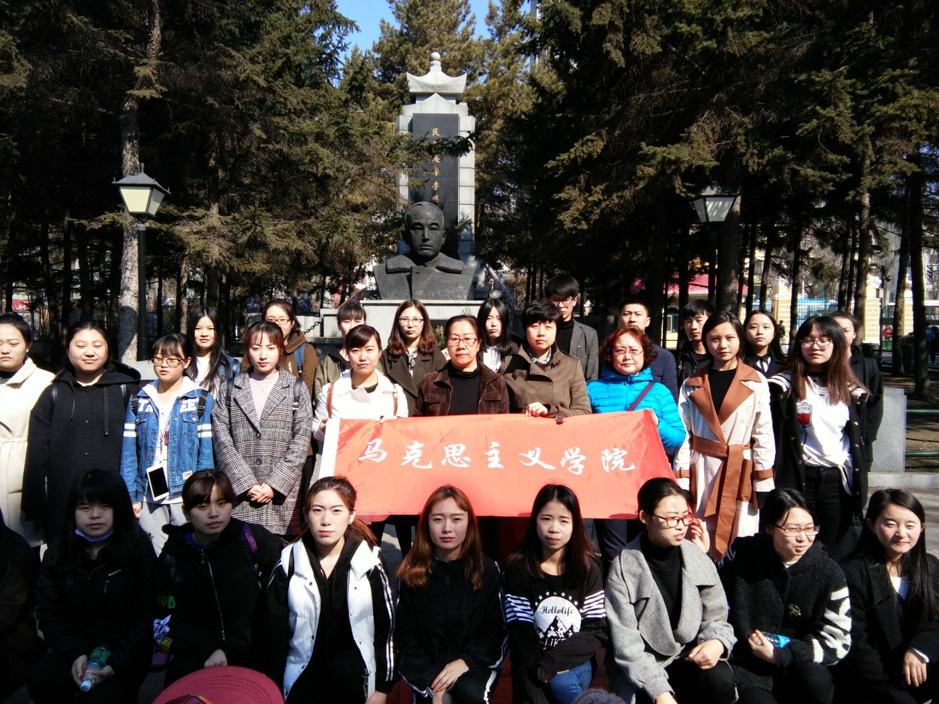 为缅怀革命先烈,继承光荣传统,弘扬爱国主义精神,2017年4月1日上午,马克思主义学院部分师生前往兆麟公园,举行了“缅怀革命先烈,传承英雄遗志”为主题的清明公祭扫墓活动。马克思主主义学院党总支书记姜秀英、副院长宋阔、中国近代史纲要教研室主任陈春红、辅导员张聪以及思想政治教育专业15级1班全体同学参加了此次活动。