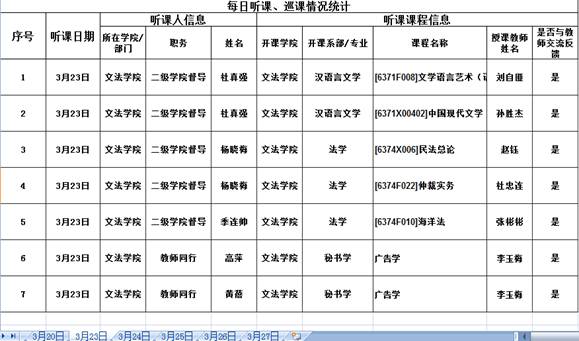 截止3月27日晚,学院共收回《线上课堂教学评价表》共20份,听课门次33门,全面覆盖我院5个专业。不仅限于院督导,校领导、院领导、系主任也都已担任督导角色。本周除听课之外,督导组还重点检查了学生的出勤、教师作业布置及批阅,以及师生的线上答疑情况。他们不满足于发现问题,而是以共同努力提高教学质量为己任。教师因能及时得到学院反馈的听课意见,大胆进行线上教学探索实践,教学效果显著。
