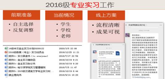 虽然专业每位老师都是线上教学开展不可或缺的力量,线上毕业论文写作指导工作任重道远,但老师们一致表示,一定将专业实习工作做实、做好,在人才培养工作的最后1公里,绝不掉队,绝不留下任何遗憾,充分展现了为人师者的担当与责任,体现了对教育教学工作的无限热爱。