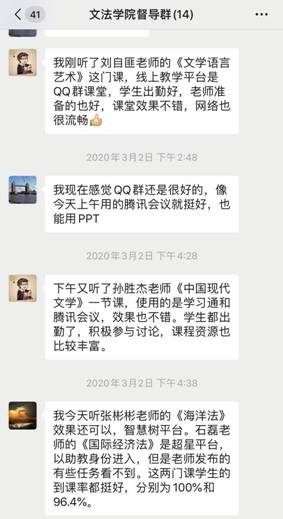 文法学院第一周线上教学总体情况良好,达到了预期效果,期间有教师们的辛苦付出,也有学生们的积极配合。我们相信,疫情寒冬终将过去,繁花和希望就在眼前!