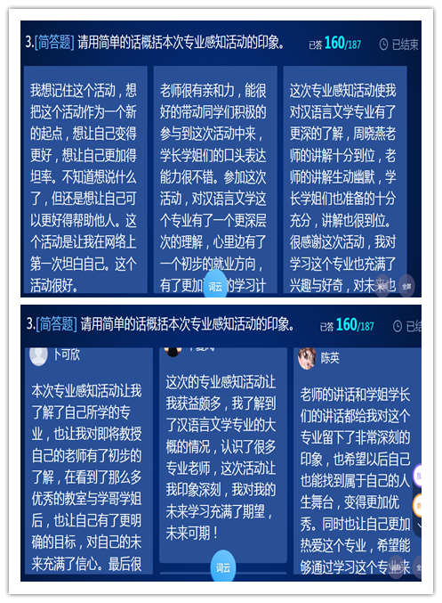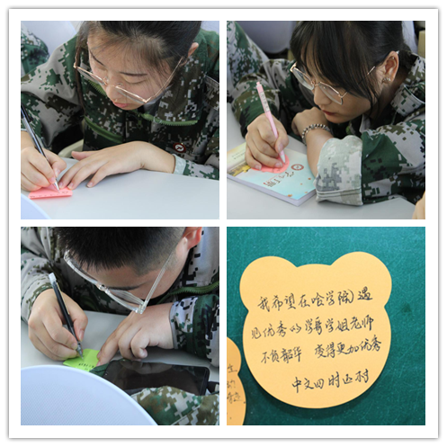 在活动的尾声,来自五湖四海的校友代表们以视频的方式传递了对2019级新生的祝福与期待,朴实无华的语言、语重心长的表达,点燃了现场的每一位参与者,热烈的掌声表达了他们对学长的感谢与祝福,同时蕴含着对自己的美好未来的无限憧憬。专业主任周晓燕老师用“不虚此行、不负韶华、不辱使命”表达了她对2019级新生的美好祝愿,希望他们用积极乐观的心态迎接四年的学习生活,找准定位、看准方向、赢在未来。最后,同学们在班课中表达了自己参加此次学习的感受,并在便利贴上郑重写下了自己的入学愿望。