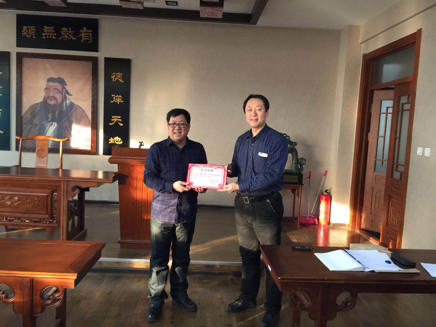 会后,文法学院院长龚宏教授为由沙丘主任颁发了汉语言文学专业社会评价与就业指导专家聘书。