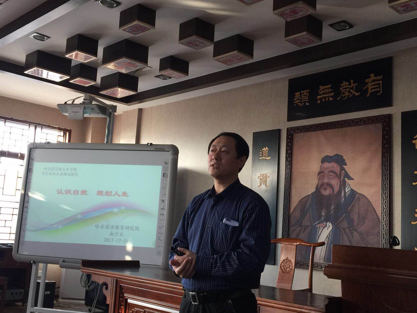 2017年12月21日,汉语言文学专业“学业计划与职业规划”系列讲座第三讲顺利召开,本次讲座聘请了我省知名德育专家由沙丘先生担任主讲人,讲座主题为“认识自我,规划人生”。讲座内容分为认识自我、了解职业、关注社会、规划人生四部分。