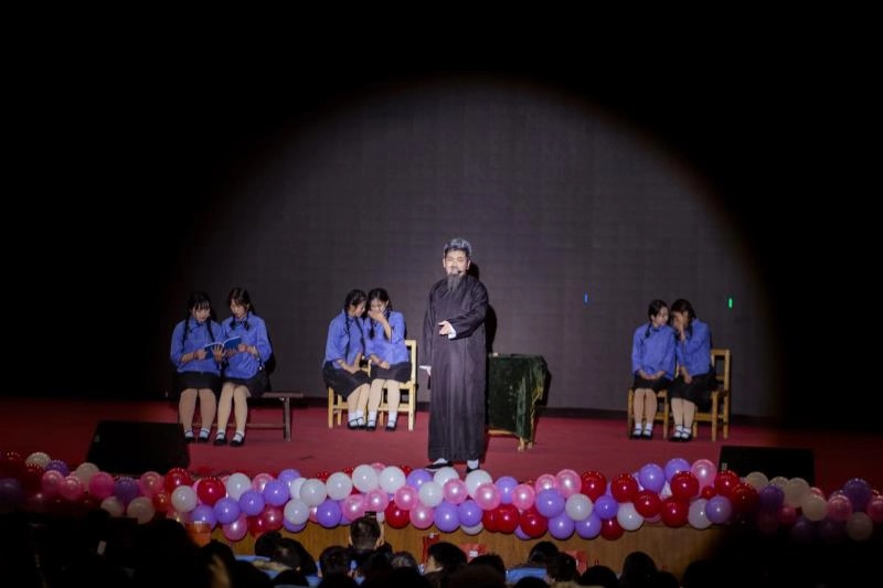 晚会的另一大看点就是由文法学院青葱剧社的成员们带来的小品《打白狼》,给同学们带来欢乐与深思。重温“一二九运动”这段历史,让同学们牢记历史、以史为鉴,肩负起国家建设和民族复兴的伟大历史责任。紧接着现代舞《Princess and Prince》以炫丽的灯光,明暗交错,勾勒出一个个青春活力的身影。配音《美女与野兽》,令观众们感受到了她们对英语口语的自信和热爱。灵动劲爆的拉丁舞更是引来全场强烈反响。浅唱低吟的歌曲《风吹麦浪》流淌在在座观众的心田。相声表演《我的文学青春》运用说学逗唱的方式让大家领悟到语言的魅力。精彩纷呈的爱国诗朗诵《颂歌新中国,筑梦新时代》重现了一二九运动的历史一幕,用热情洋溢的声音、表演来歌颂对祖国母亲崇高的敬意与真挚的热爱。晚会的最后是由2019级新生带来的大合唱《不忘初心》,让青春梦想留在心田,让奋斗之音飞扬传唱。