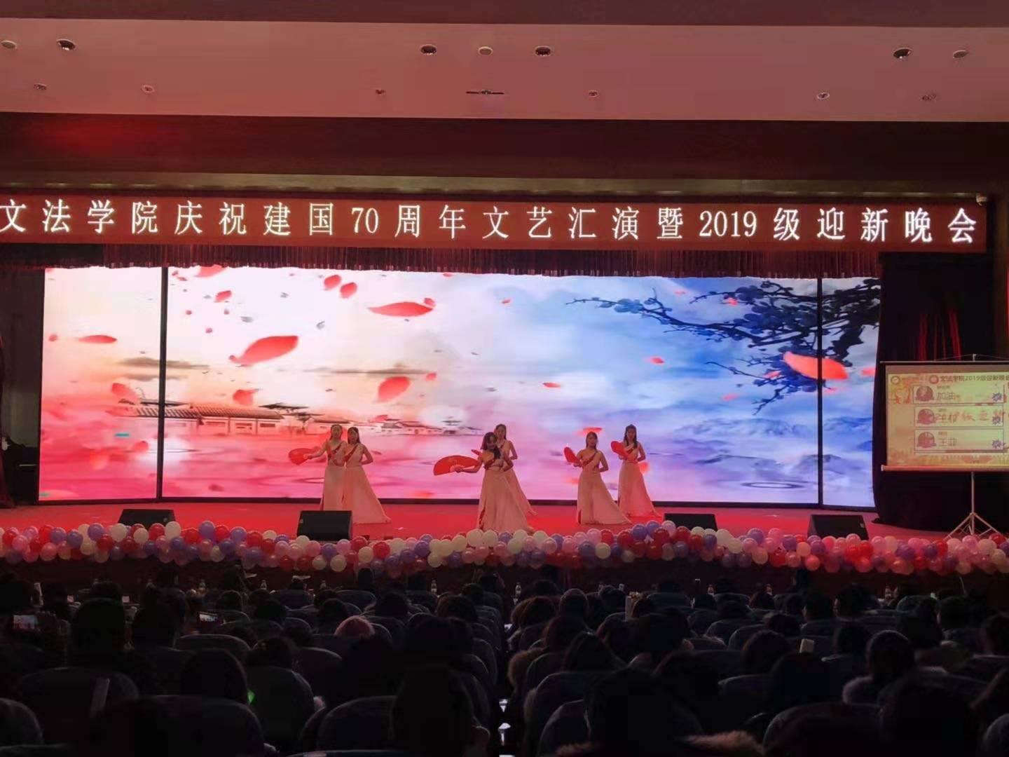 己亥一九,光阴似箭。日新月异70载,风雨兼程新时代。文法学院于2019年12月20日星期五晚18:00在图书馆报告厅举行庆祝建国七十周年文艺汇演暨2019级迎新晚会。文法学院院长龚宏、文法学院党总支书记杜真强、文法学院党总支副书记常征、以及文法学院部分专业课教师及辅导员出席本次活动。到场本次活动还有一位特殊的嘉宾,他就是文法学院99级校友,现任哈尔滨市光华中学副校长的董清国先生。