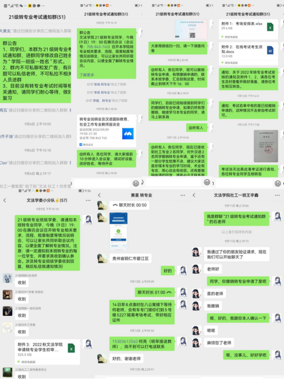 图:建立21级转专业通知群,一对一答疑解惑、服务全程
