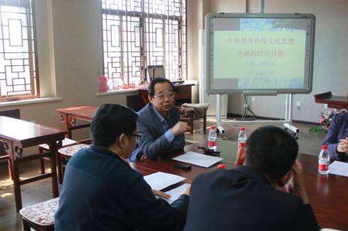 认识到中华优秀传统文化的时代价值,结合我校教育立人的理念和资源,胡宝忠校长于2016年6月初步提出“中华优秀传统文化思想内涵的时代价值”的课题,并在文法学院国学堂召开动员会,组织文法学院的部分教师共同完成本课题的视频公开课录制工作。会上,他阐述了该课题的价值与意义,更指出高校有丰富的人文教化思想和充足的教育资源,应该为弘扬中国优秀传统文化做点事情,这是我们义不容辞的责任。文法学院院长龚宏也从人文角度谈了对该课题的理解,介绍了本次参与该课题的教师队伍,并就讲座的内容和方向提出了几点设想。