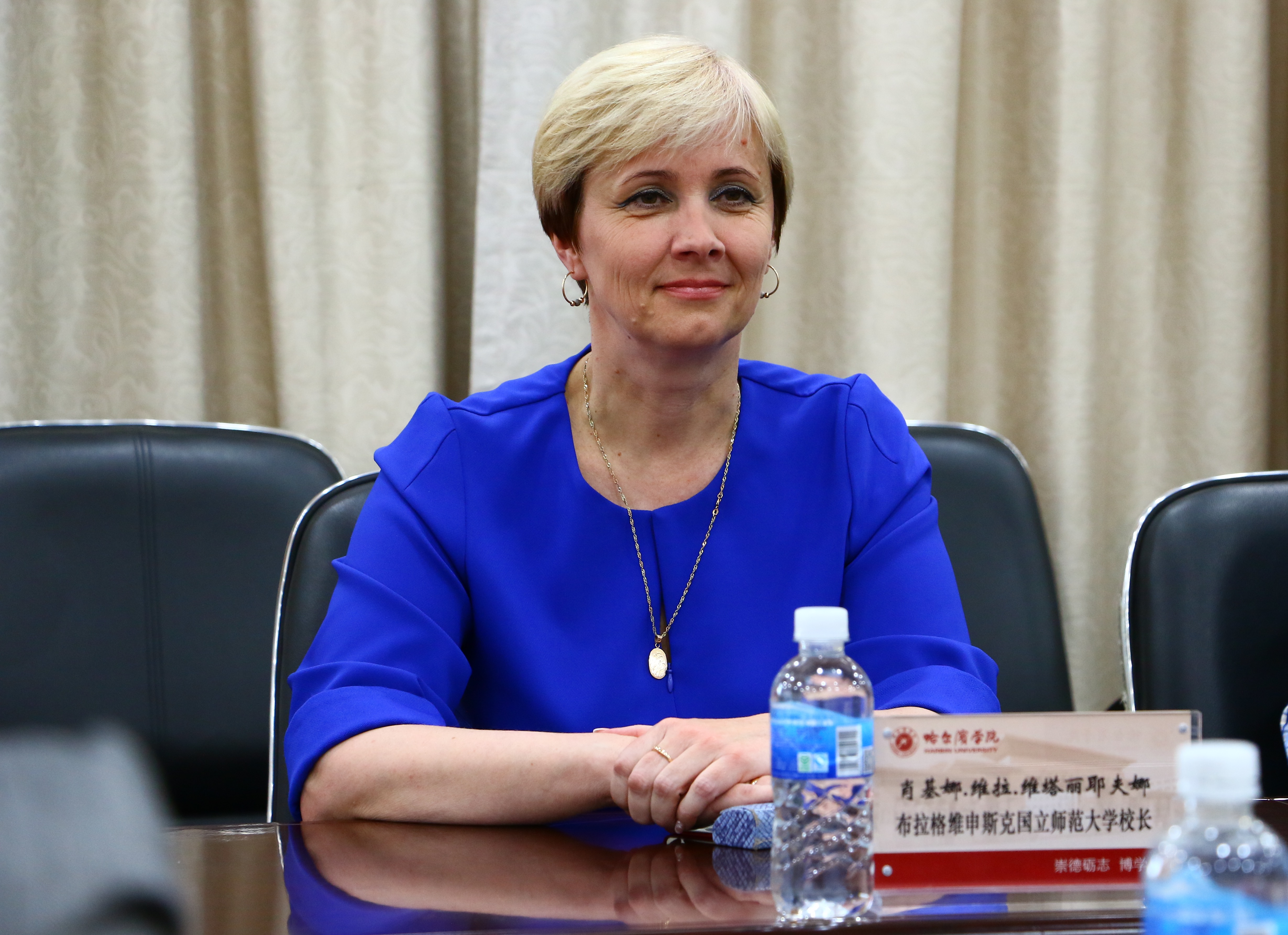 随后,俄方校长肖基娜.维拉维.塔丽耶夫娜女士简要介绍了布师大的办学历史和目前的发展建设情况。她指出,与哈尔滨的高校合作有良好的地缘优势,每年很多高校的专家、学者与布师大有着频繁的学术交流。中国的一带一路政策,不仅为两个国家的发展带来了机遇,同时也为两所学校之间的进一步交流提供了更广阔的平台。希望两校能够保持长期稳定的交流与合作。