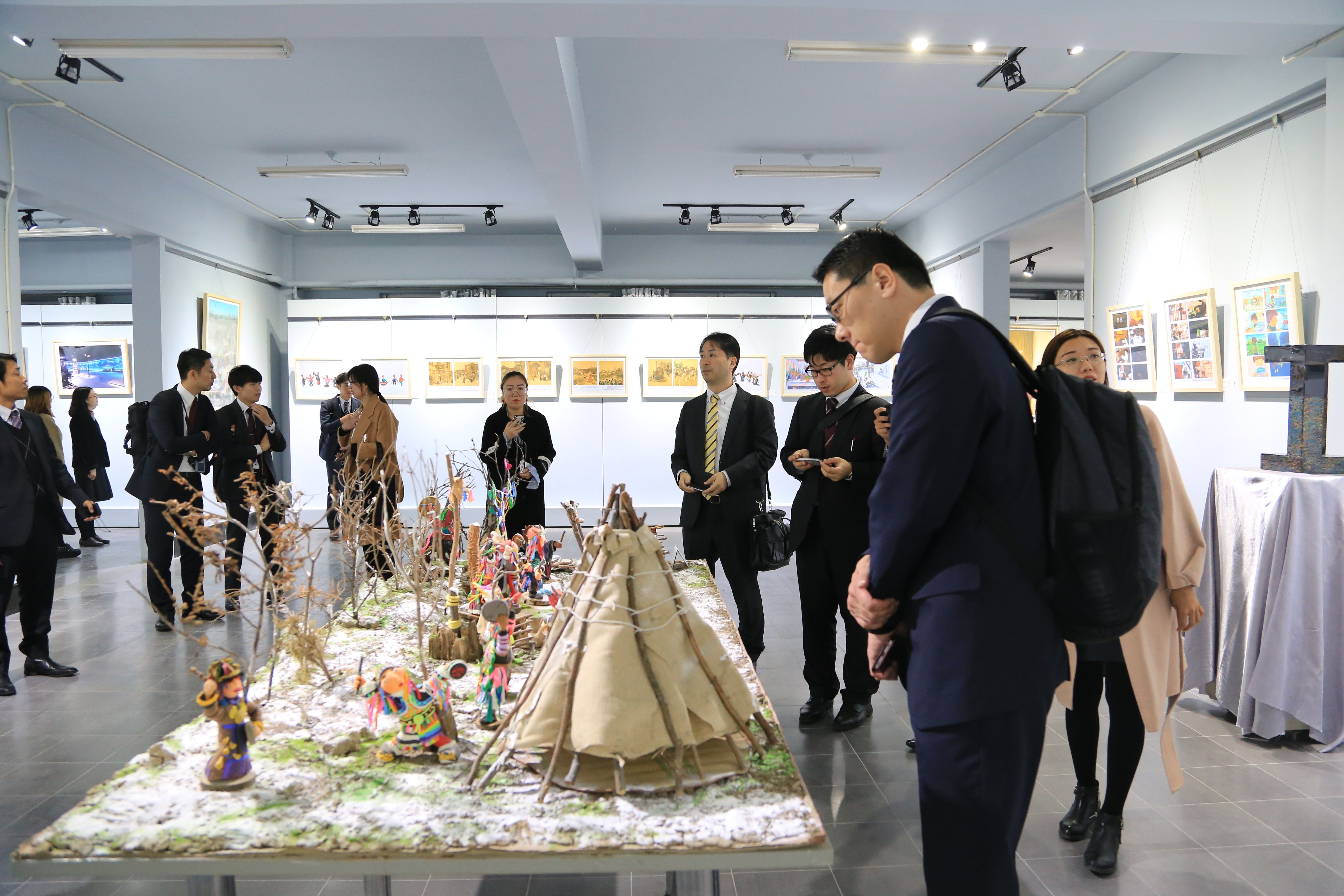 日方代表团先后参观了信息工程学院计算机应用技术研究所、校企共建大学生创新创业基地和艺术与设计学院艺术实验中心。信息工程学院院长贾宗福、党总支书记任向民、副院长宗明魁、王知非、苑成军、党政办公室副主任王晓峰、外事办副主任沈剑锋、外语学院教师崔莉莉、付妍妍和学生代表陪同参观并出席座谈交流。