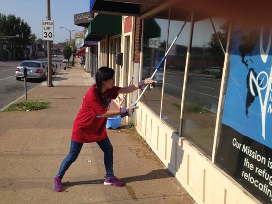 最后要提到的是一场大规模的义工活动。这是由韦伯斯特大学发起,各个学院共同参与的志愿者义工活动。我是教育学院的学生,因此参加了教育学院所承担的一项去为伊拉克难民提供教育的难民学校进行义务清扫活动。这所名为International Oasis 的难民学校是由一对美国夫妇创办的,为来自伊拉克、缅甸、巴西等地的难民提供英语学习的机会。所有的学习都是免费的。学员可以根据自己的英语水平进行不同等级的学习。当天我们所承担的工作除了打扫屋里屋外的卫生,还整理了学校地下室里来自各方捐赠的床单被褥的整理分拣工作。由于时间有限,加之有晚课,整个工作进行了大半就不得不告一段落。通过本次活动,我亲身体验了在美国学校做义工的各个环节。尽管之前知道这是全校的活动,早晨在礼堂见到的人山人海还是让我感到震惊。学生和教工们统一着装,按系别坐在固定的区域,井然有序的领取早餐。为了鼓励学生参与的积极性,学校的校长亲自到场讲话并主持了抽奖环节,极大程度的激励了学生的热情。从组织到参与,从参与的成员,规模,活动的安排可以看出,这项活动在韦伯斯特已经进行了很多年,已经形成了良好的沿袭和传承。