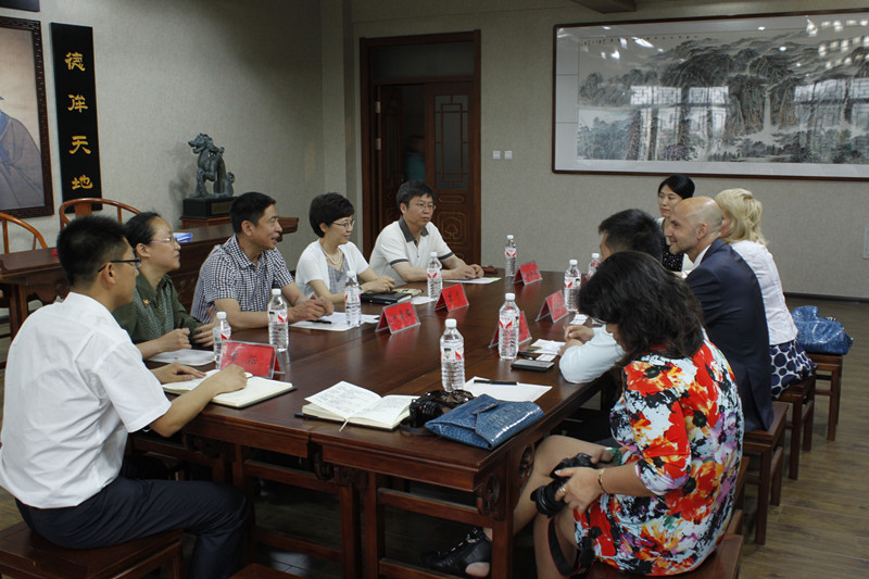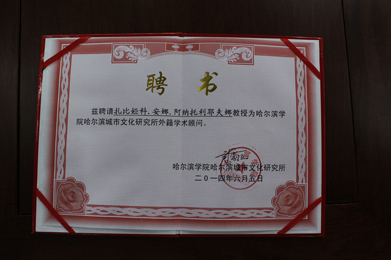 俄罗斯阿穆尔国立大学校长布鲁金科.安德烈.多利耶维奇、文学与世界艺术文化教研室主任扎比娅科.安娜.阿纳托利耶夫娜一行于2014年6月5日上午到访MK体育哈尔滨城市文化研究所,MK体育副校长樊千陪同,MK体育哈尔滨城市文化研究所副所长刘勇强、副所长杜真强、副所长李雪、秘书长常征热情接待。双方在国学堂展开交流、签署合作协议,刘勇强副所长代表研究所向安娜主任颁发外籍学术顾问聘书。
